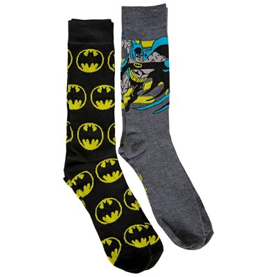 Mens Batman Character and Bat Symbols 2-Pair Pack Crew Socks