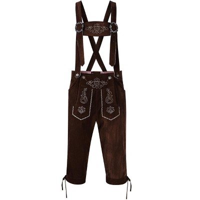 Men's Vintage Suede Suspenders Shorts - Detachable Straps, Embroidered Details for Carnival, Cosplay, Holiday Party