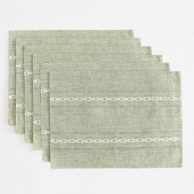 Aoibox Wracra Cotton Linen Placemats, Set of 6 Rustic Hemstitch Place Mats for Kitchen Table, Heat Resistant with Sage Green Hemstitch Design