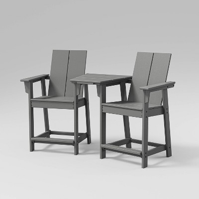 POLYWOOD Moore 3pc Outdoor Counter Patio Chair Set with Connecting Table Slate Gray