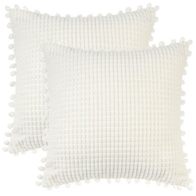 Unique Bargains Solid Square Boho Pillow Covers with Pom-poms 2 Pcs