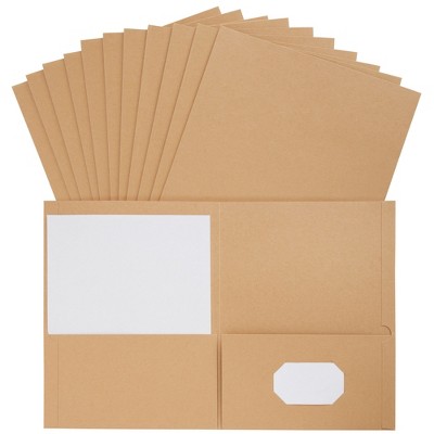 Juvale 12 Pack Brown 2-Pocket Folders, Letter Size Kraft Paper Material with Business Card Holder for School, Office Supplies, 9.25 x 12 In