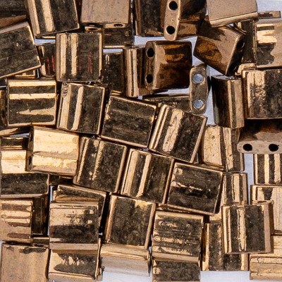 John Bead Miyuki Tila Beads 5x5mm 2-Hole TL0457V Dark Bronze Opaque Metallic, 5.2Gms Vial