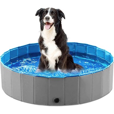 Jasonwell Foldable Pet Pool - Collapsible Dog Bath & Wading Tub for All-Size Dogs & Kids - 32" - Mdf Wood Gray