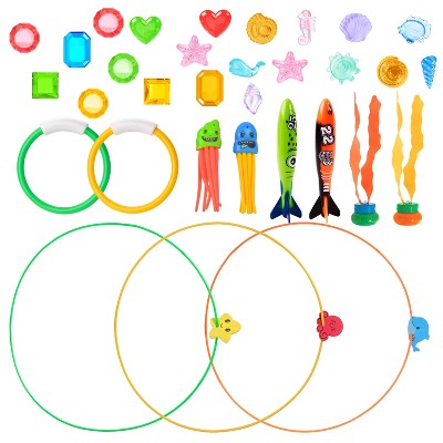 Joyfy Pool Diving Toys Games 32 PCS Swimming Pool Toys with Diving Rings Dive Sticks Torpedo Bandits Fish Toy for Boys Girls Adults