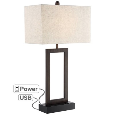 360 Lighting Todd Modern Table Lamp 30" Tall Bronze Rectangular with USB and AC Power Outlet in Base Oatmeal Fabric Shade for Living Room Office House