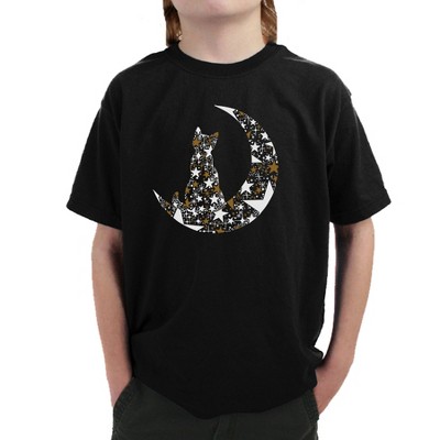 LA Pop Art Cat Sitting On Moon - Boy's Word Art T-Shirt