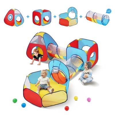 Kiddey 5 Piece Pop-Up Play Tent, includes 2 Jungle Gym Crawl through Tunnels, 2 Ball Pit Play areas, a Basketball Hoop & a Bonus Stick on Dart Game