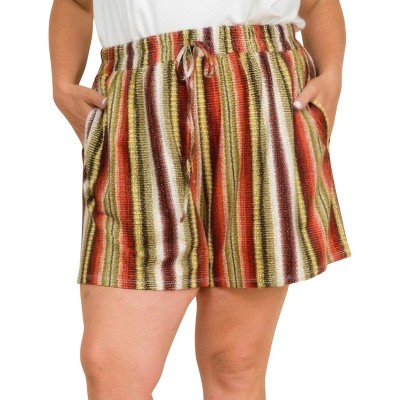 NY Collection Womens Belted Striped Casual Walking Shorts