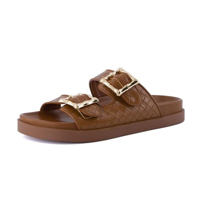 CUSHIONAIRE Loft Women’s Slide Sandal – Double Buckle Slip-On with Woven Detail, Adjustable Straps & Memory Foam