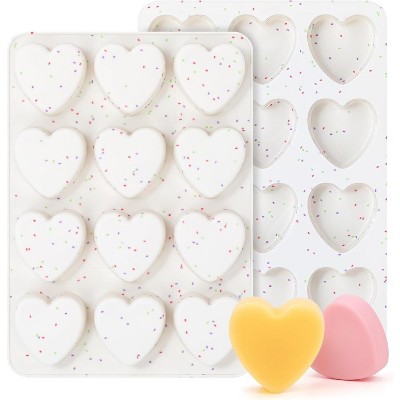 Dronkon 2 Inch Small Heart Shaped Silicone Molds for Chocolate, Candy, Cake, Soap (Set of 2, Cream)