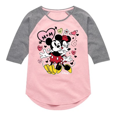 Girls' - Disney - Mickey Minnie Heart Shirt Tail Raglan Graphic T-shirt
