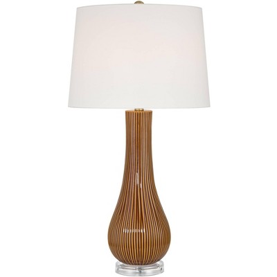 Possini Euro Design Granview Modern Table Lamp 32 1/2" Tall Brass Column Taupe Organza Outer Off White Linen Inner Drum Shade for Bedroom Living Room