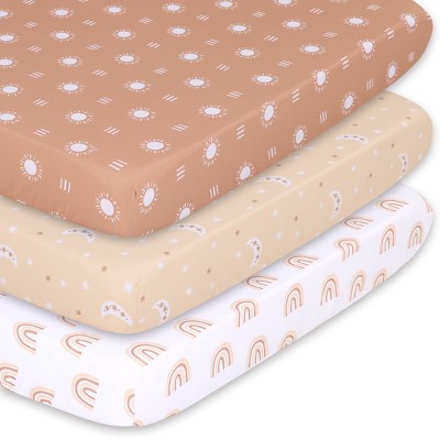 The Peanutshell Mini Crib Sheet Set - 3 Pack - Multiuse for Pack n Play, Playard, Playpen, Mini Crib - Boho Rainbow