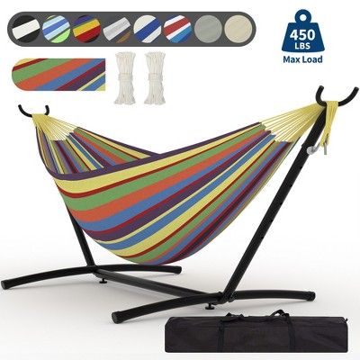 Heavy Duty Double Hammock with Stand 450lb Capacity Portable Steel Frame for Outdoor Patio Yard Camping and Garden Relaxation