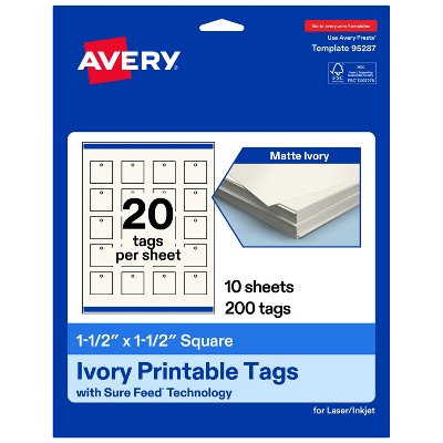 1-1/2" x 1-1/2" Square, Matte Ivory Printable Tags