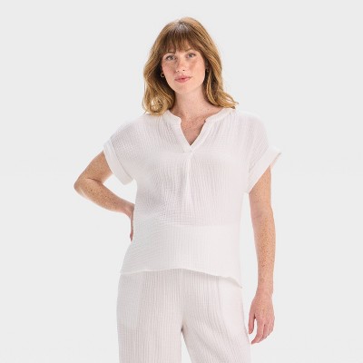 Short Sleeve V-Neck Gauze Roll Tab Maternity Shirt - Isabel Maternity by Ingrid & Isabel™ White