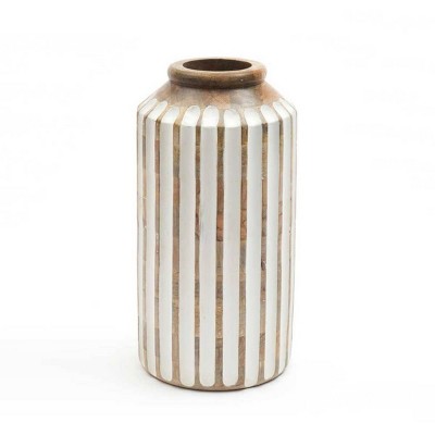 HomeRoots 10" Beige And Ivory Cylinder Terracotta Table Vase