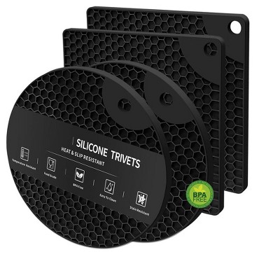 Itopfox Trivets for Hot Dishes, Pots and Pans, Heat Resistant Kitchen Pads, Large Coasters Set for Home Essentials and Farmhouse Decor (Black)