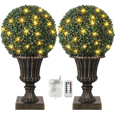 Gulches 49in Artificial Bay Topiary Tree Ball Set of 2 in Pot Green Silk Leaves Wood Trunk Indoor Outdoor Decor