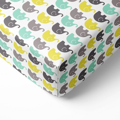 Bacati - Elephant Mint Yellow and Gray 100 percent Cotton Universal Baby Crib or Toddler Bed Fitted Sheet