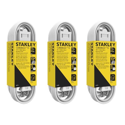 STANLEY 31132 CordMax Office Grounded Low Profile 3-Outlet Indoor Extension Cord 15 Feet Black