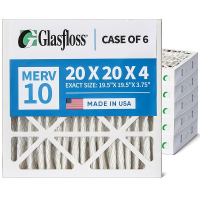 Glasfloss 20x20x4 MERV 10 AC & Furnace Filters. 6 Pack. Actual Size: 19-1/2 x 19-1/2 x 3-3/4