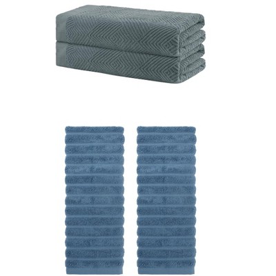 REGALWOVEN Bathroom Gym SPA Cotton Soft Absorbent Bath Hands Towel Set 2 Pcs