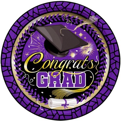 Treasures Gifted Purple Graduation Plates 7in - Purple Graduation Party Supplies - 16 Pack