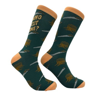 Crazy Dog Men's Who Cut One Socks Funny Sarcastic Wood Cutting Graphic Novelty Footwear for Men