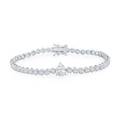Bella Silver Sterling Silver, Pearshaped & Round CZ Tennis Bracelet - Silver