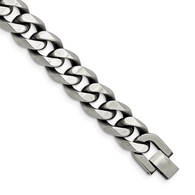 Black Bow Jewelry 13mm Stainless Steel Antiqued Beveled Curb Chain Bracelet, 8.5 Inch