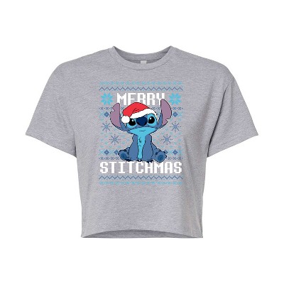 Women's - Lilo & Stitch - Merry Stitchmas Christmas Cropped Graphic T-Shirt