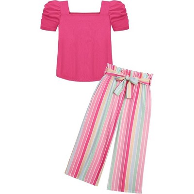 Arshiner Girls 2 Pieces Outfits Kids Square Neck Puff Sleeve Tops and Pants Set with Pockets 6-14 Years