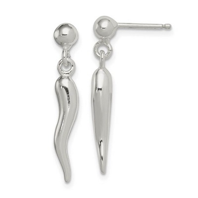 Black Bow Jewelry 3D Polished Italian Horn Dangle Post Earrings in Sterling Silver