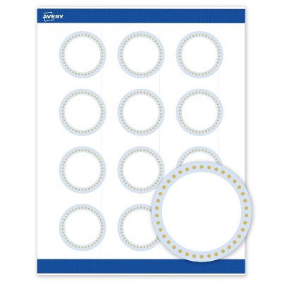 Avery Labels, 2" Diameter, Matte White, Blue Border w/ Gold Dots, 120ct