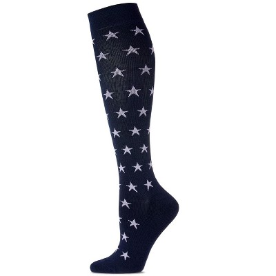 Memoi Women's Old Glory Bamboo Blend 8-15mmHg Graduated Compression Socks Navy 9-11