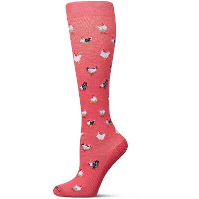 Memoi Roosters 8-15 mmHg Graduated Bamboo Compression Socks Pink Carnation 9-11