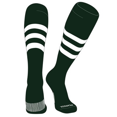 PEAR SOX Striped OTC Baseball, Softball, Football Socks (A) Forest Green, White