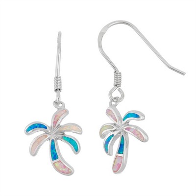 Opalata Sterling Silver White, Pink, and Blue Inlay Opal Palm Tree Earrings - Multi