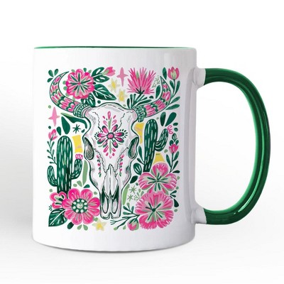 Elanze Designs 20 oz Stainless Steel On the Go Insulated Travel Tumbler With Push Top Lid, Fiesta Then Siesta Succulent Cactus White