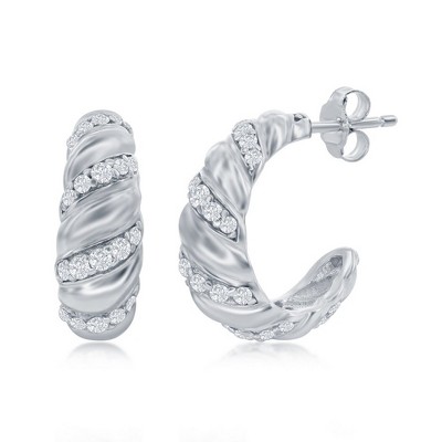 Bella Silver Sterling Silver 3x45mm Inside-Outside CZ Hoop Earrings - Silver