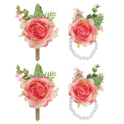 Unique Bargains Rose Wrist Corsage and Boutonnieres Fabric Adjustable Artificial Flowers 4 Pcs