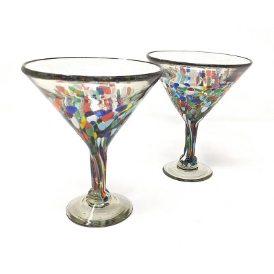 Dos Sueños Mexican Hand Blown Margarita Glasses - Confetti Rock Design - 16oz - Set of 4