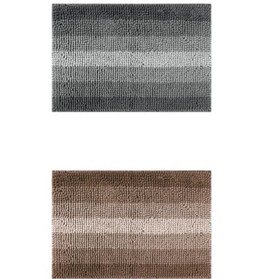REGALWOVEN Contrasting Color Striped Non-Slip Plush Shaggy Bathroom Mats 2 Pcs
