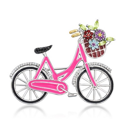 Ross-Simons 0.92 ct. t.w. Multi-Gemstone and Multicolored Enamel Floral Bike Pin in Sterling Silver and 18kt Gold Over Sterling