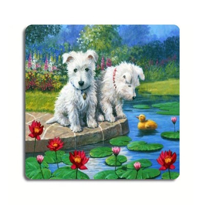 Two Dogs By The Pond Vintage Tin Sign Cute Wall Decor Retro Metal Wall Art for Home Office 8x8 Inches