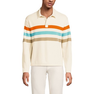 Lands' End Men's Long Sleeve Cotton Rugby Sweater Polo