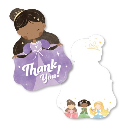 Big Dot of Happiness Princess Thank You Cards with Envelopes, Purple Flat Princess Birthday Party Blank Thank You Note Cards, Set of 12