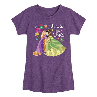 Girls' - Disney Princess - Tiana Snow White Rapunzel We Rule The World Fitted Short Sleeve Graphic T-Shirt